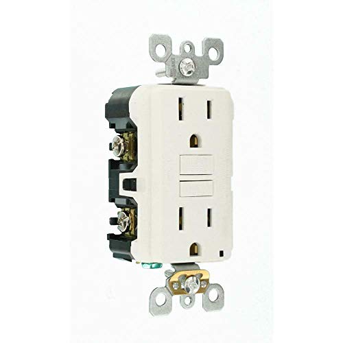 Ideal for desktops and other compatible devices, this white outlet is crafted from durable brass, ensuring long-lasting performance. Add peace of mind to your living or working space with the dependable protection of the Leviton Slim GFCI Outlet.