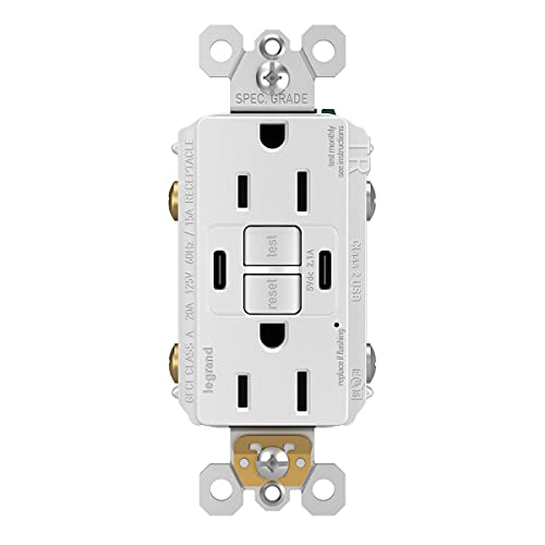 Upgrade your outlets with the Legrand-Pass & Seymour Radiant white GFCI outlet, featuring built-in USB ports for super-fast charging. Forget about bulky AC adapters—our dual 5-volt DC USB ports support USB 2.0, 3.0, and 3.1C for all your devices.