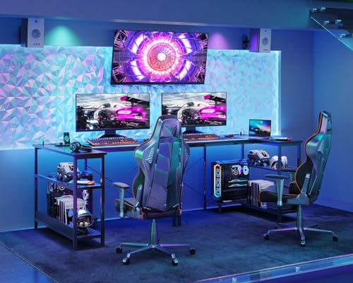 Ample Storage Space: Featuring two-tier open shelves and a PC stand, the desk offers ample space for your PC, books, and other devices. Additionally, a side storage bag helps organize gaming devices or office supplies.